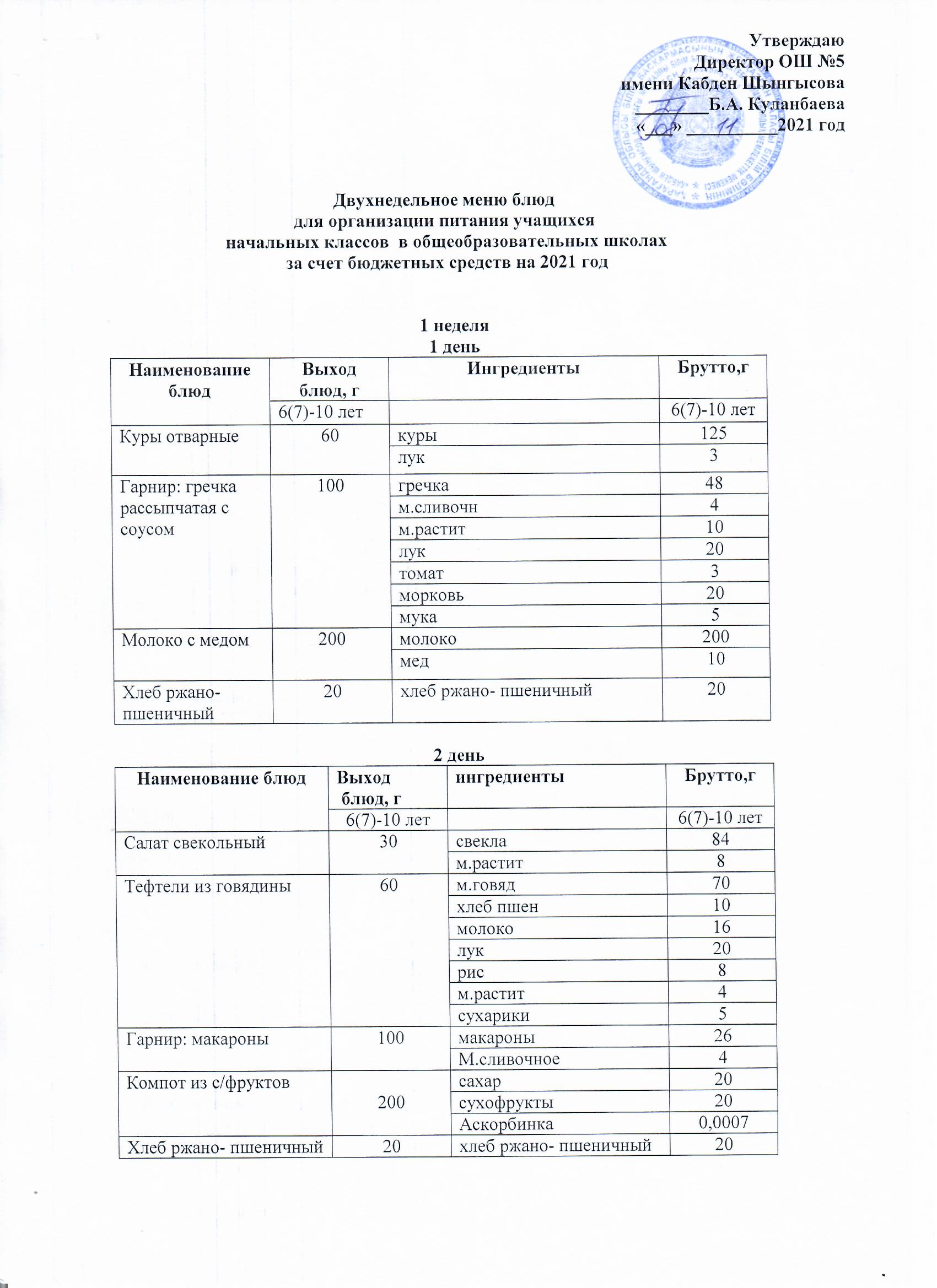 2 тоқсан ас мәзірі бастауыш сыныптар үшін