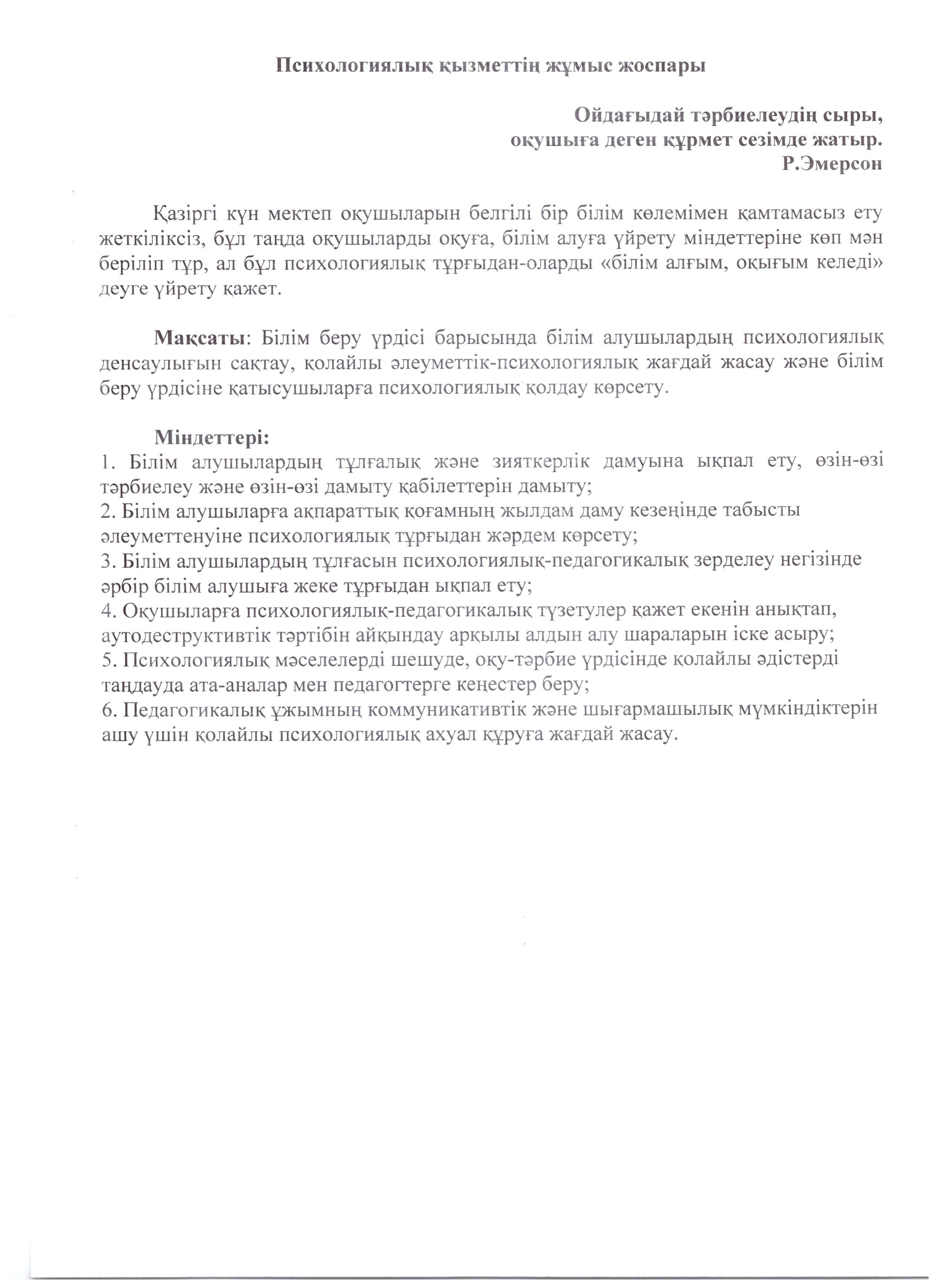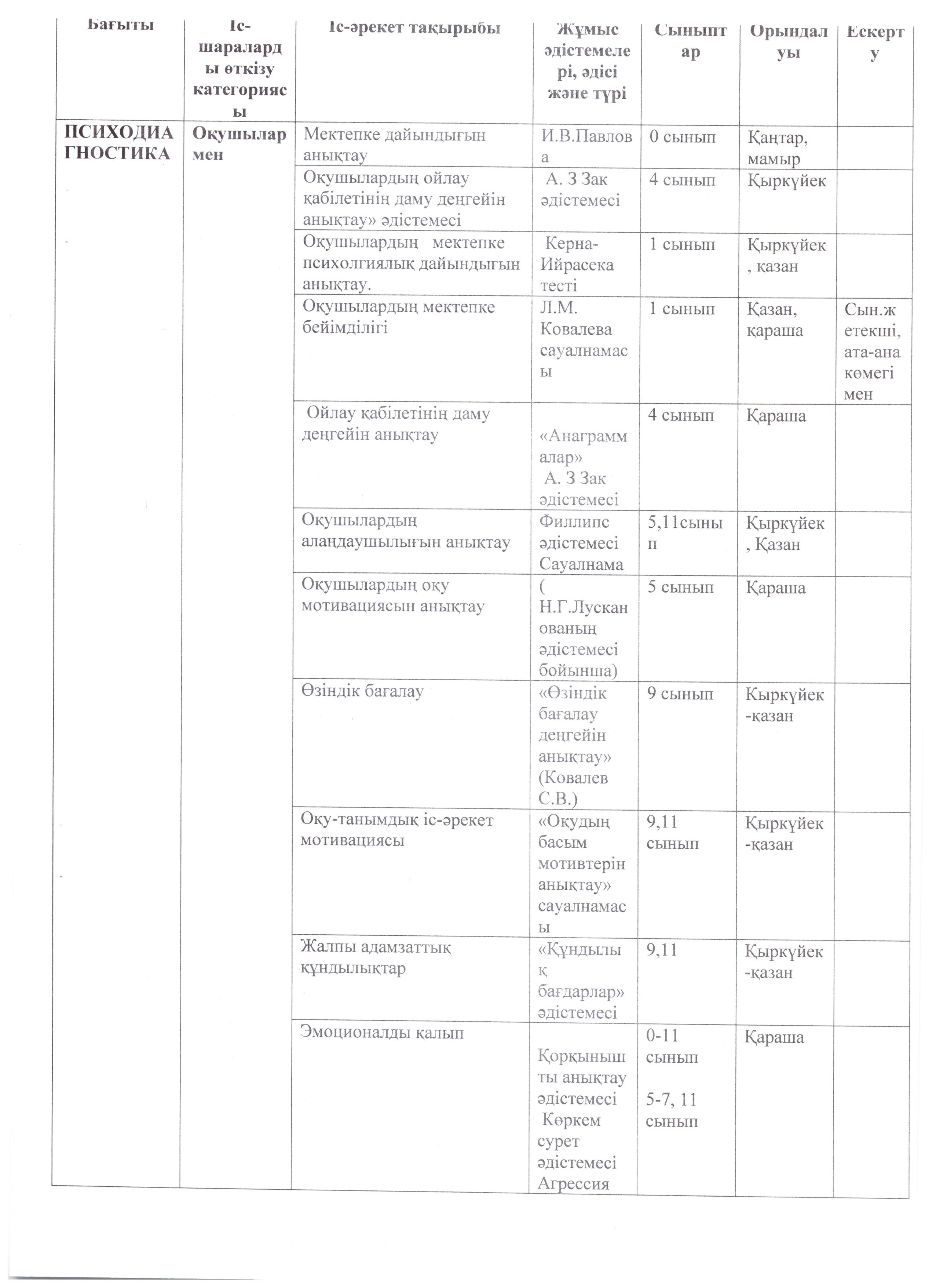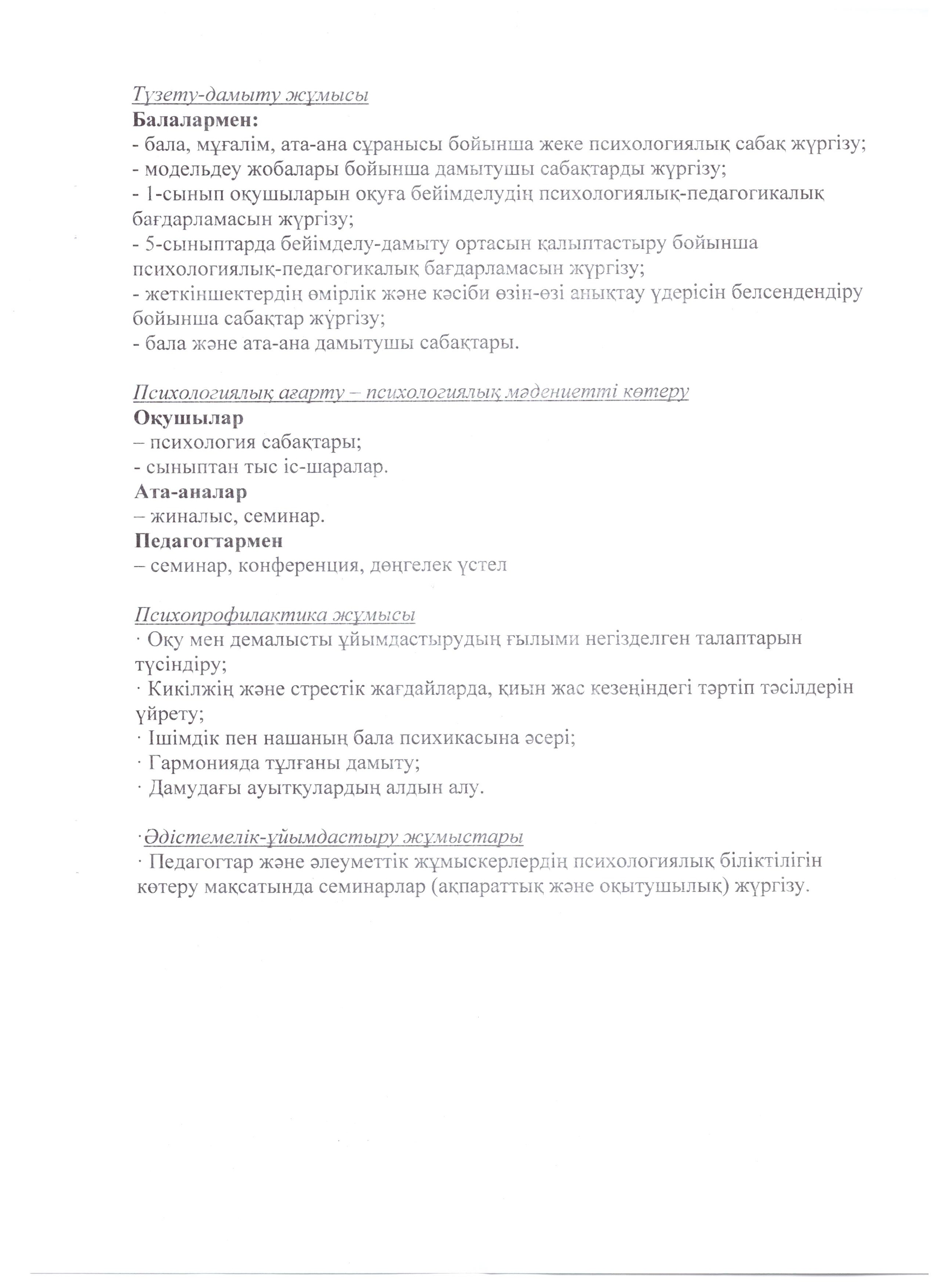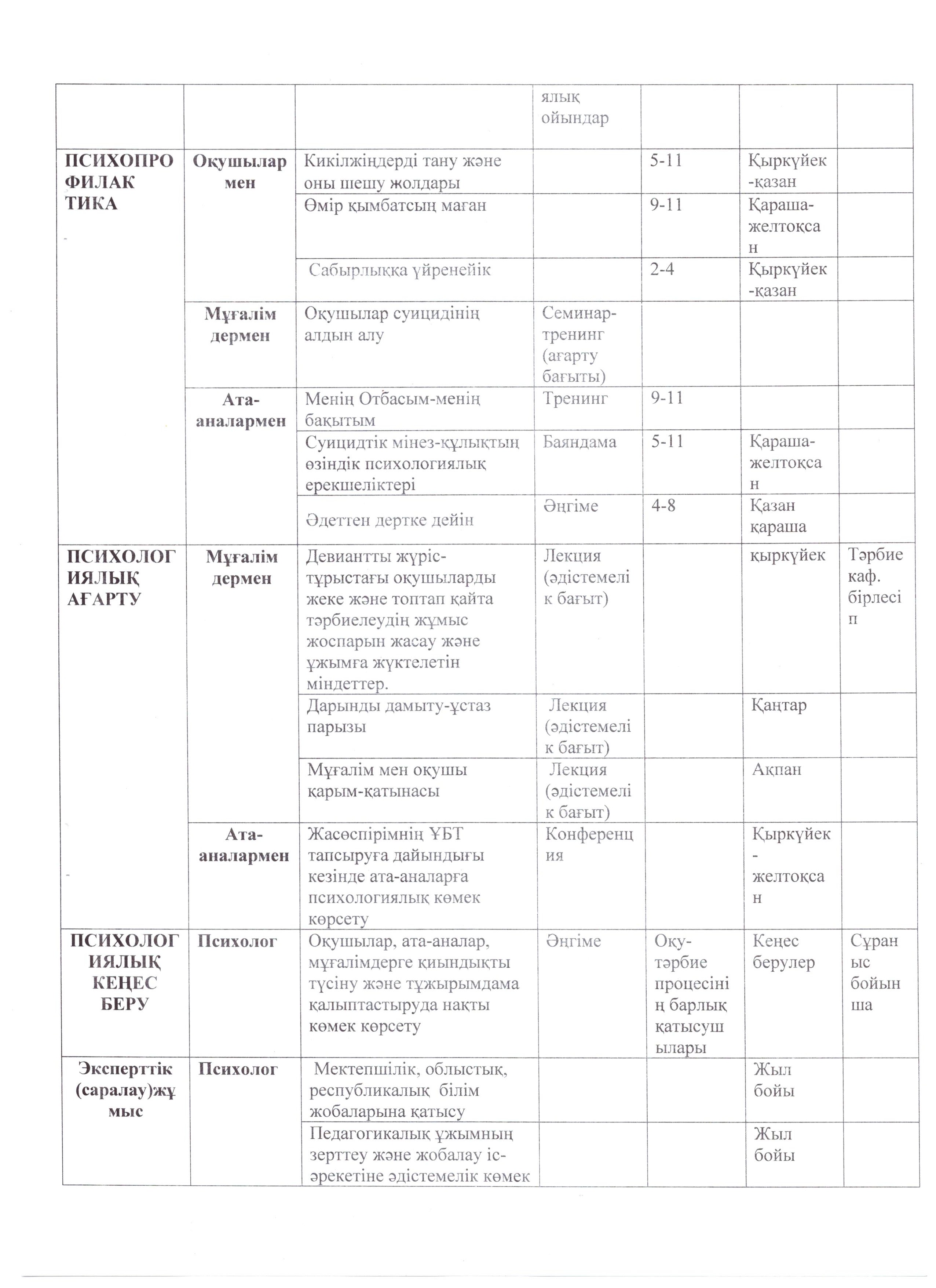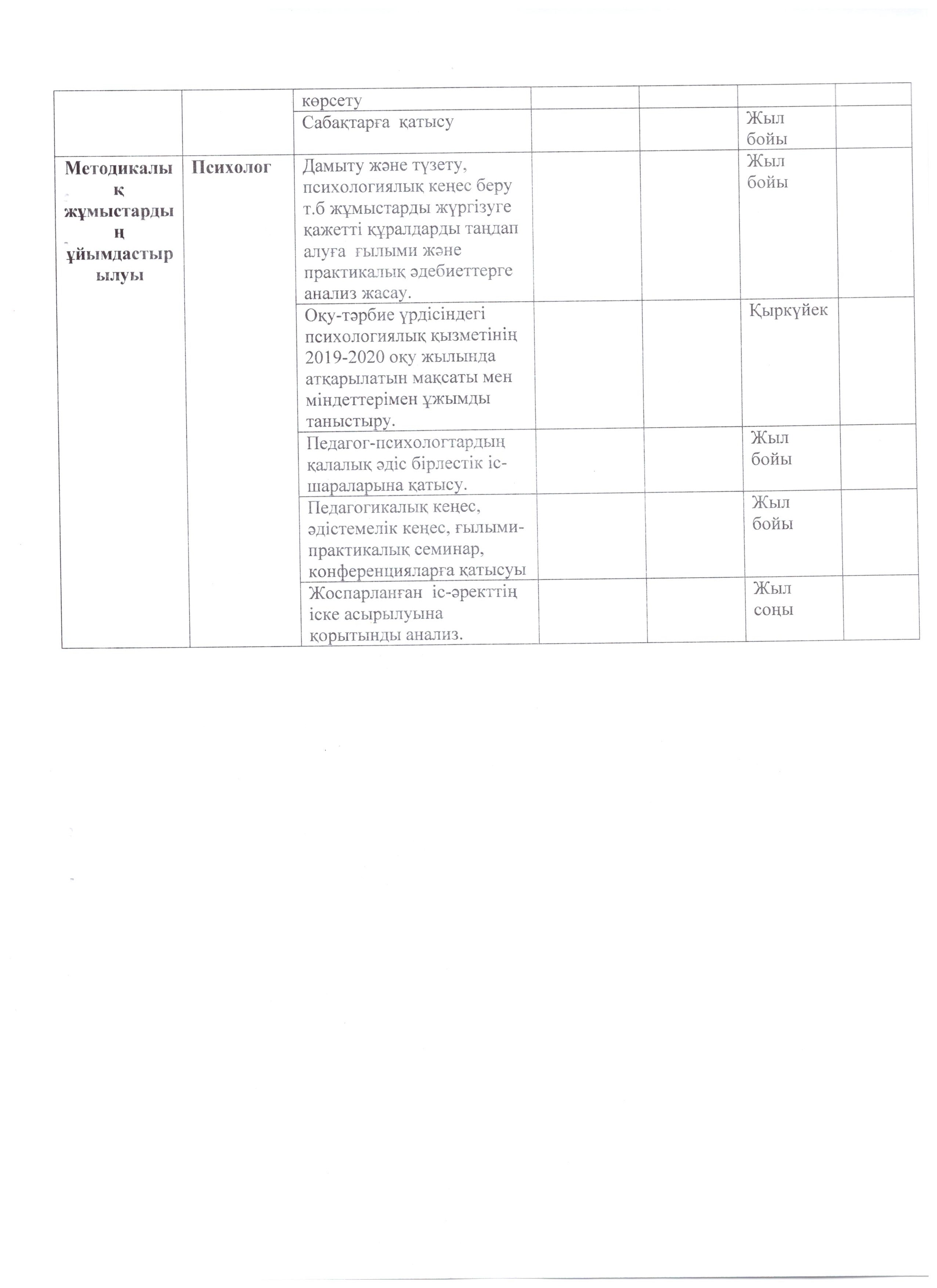 Педагог-психологтың Жылдық жоспар