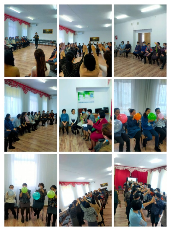 Психологиялық тренингтің мақсаты: Ұжымда сенімді қарым-қатынасты оранату, қалыптастыру және нығайту. Психологиялық тренингтен ұстаздар белсене қатысып,алғыстарын білдіріп,жағымды әсермен көңіл-күй алды.