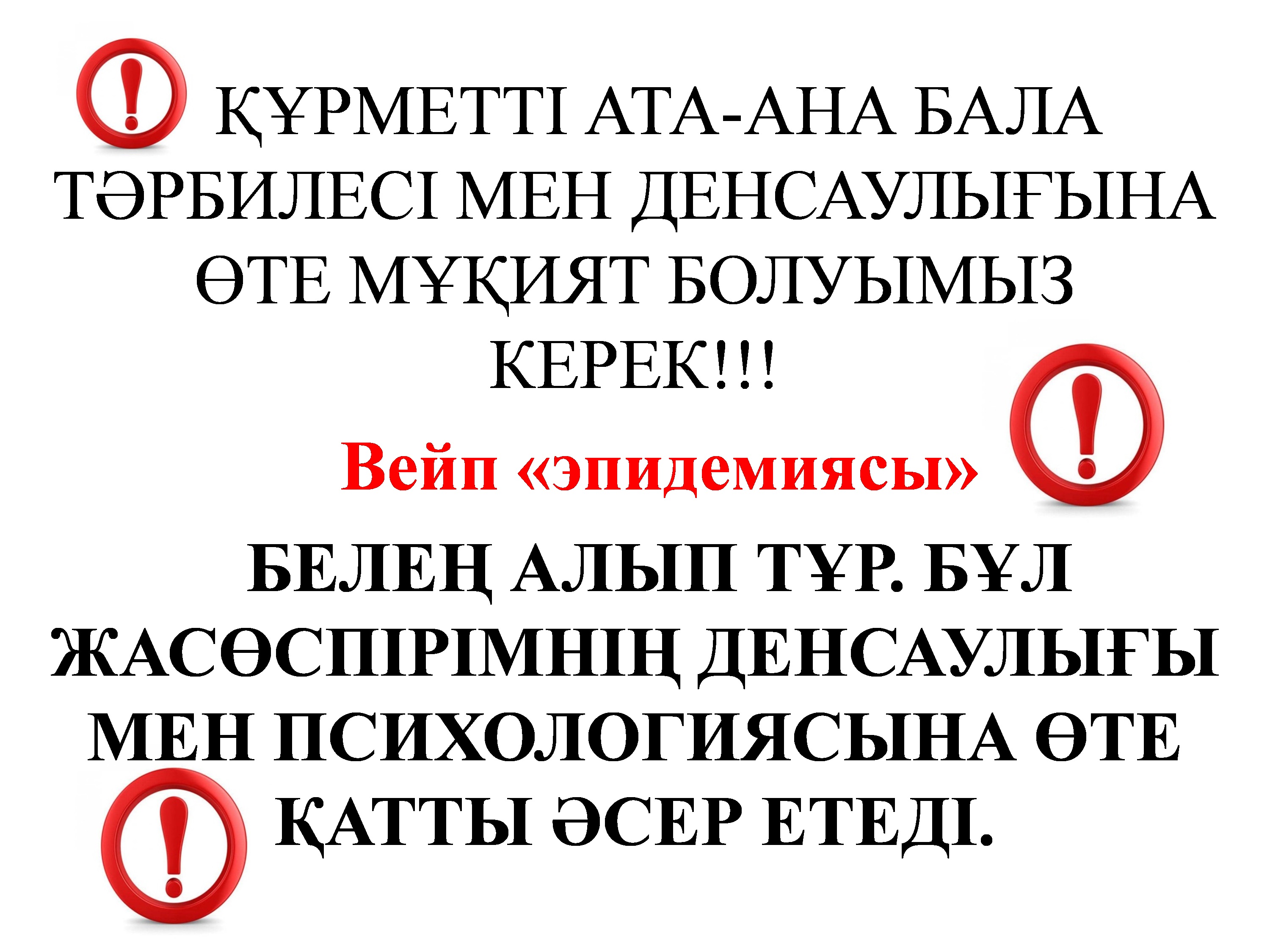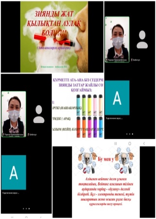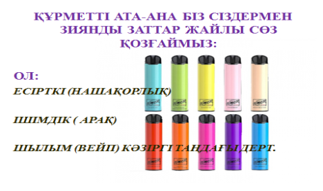 Жоспарға сай мектеп педагог-психологтарының ұйымдастыруымен 8 сынып оқушылары мен ата-аналарына «Вейп-денсаулыққа өте қауіпті!» атты баяндаманың және «Зиянды әдеттерден аулақ болу» атты тренингтің есебі төмендегідей.