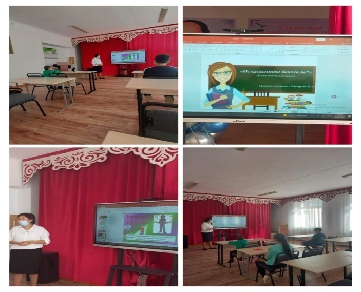 2021 жылдың 08 қазан күні жоспарға сай мектеп педагог-психологтары Бакирова Н.А., Андагулова П.Е «Жаңа оқу жылын- жалынды жастық жігермен бастайық!» атты жас мамандаремн психологиялық тренинг өткізді.