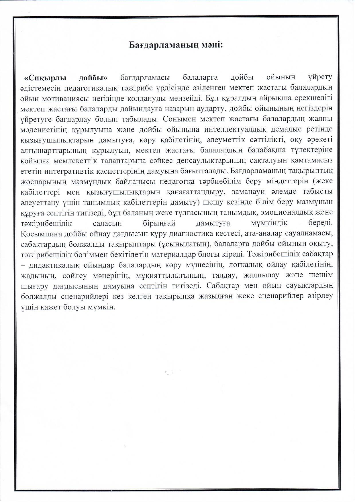 Дойбы ойынын үйрету барысында тәрбиеленушілер жеке тұлғасының интеллектуалдық және ерікжігер әлеуетін ашу.