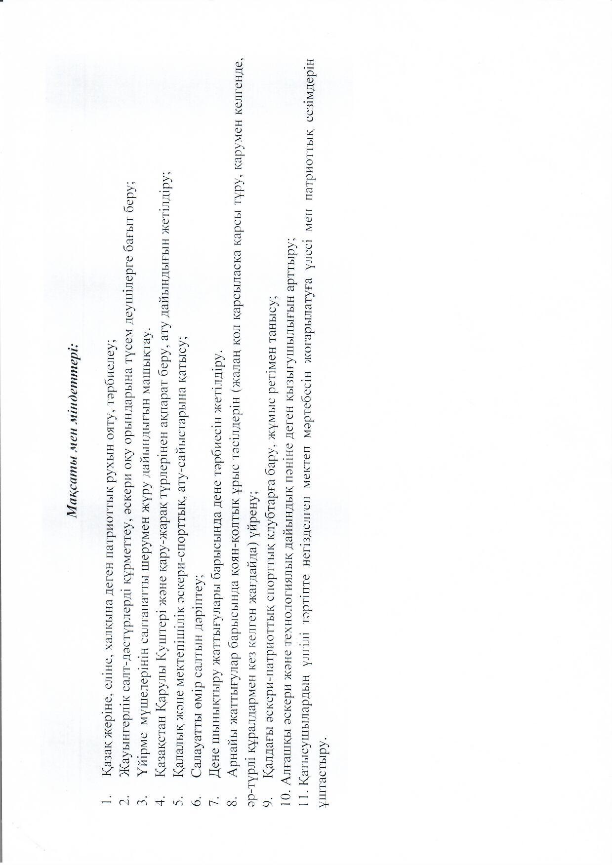 - Жауынгерлік салт-дәстүрлерді құрметтеу, әскери оқу орындарына түсем деушілерге бағыт беру;