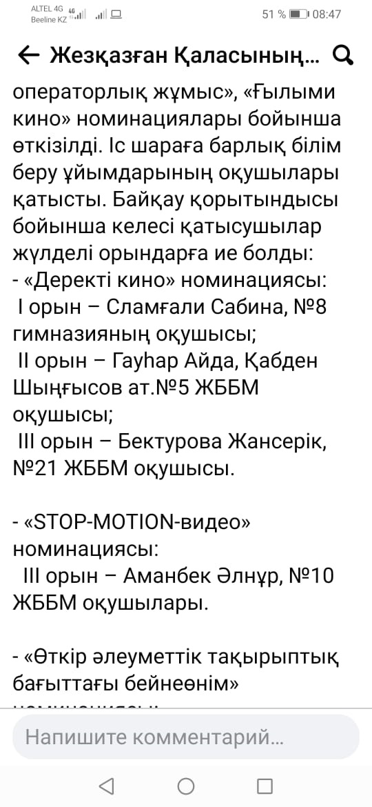 Пікірталас нәтижесі бойынша 11Ә сыныбының «Зерделі» командасы жеңіске жетіп, қалалық кезеңге жолдама алды. https://www.facebook.com/107552721140150/posts/315817850313635/