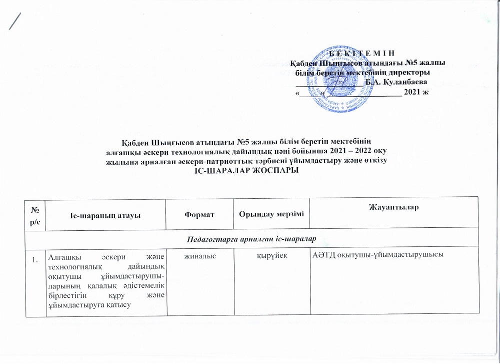 2021 жылдың 28 қыркүйек күні Қабден Шыңғысов атындағы №5 жалпы білім беретін мектепте сынып жетекшілерінің әдістемелік бірлестігінің бірінші отырысы өтті. Отырысты мектеп директоры Б. А. Құланбаева ашты. Отырысқа мектеп психологтары Н.А.Бакирова, П.Е. Андагулова, сондай-ақ АТӘД пәнінің оқытушы -ұйымдастырушысы Т.С. Калманов шақырылды.
