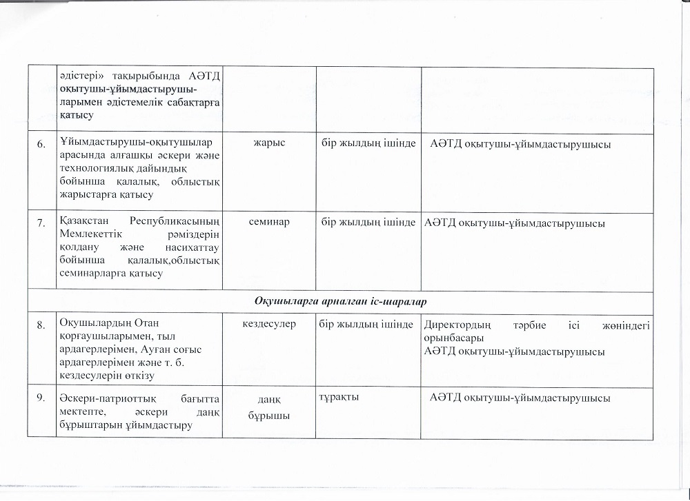 Отырыста келесі мәселелер қаралды:" Теракт кезіндегі білім беру қызметкерлерінің іс-қимыл алгоритмі"(АТӘД пәні мұғалімі Т.С. Калманов) , "Педагогтың міндеттері"( ДТІЖО Б.М. Абишева) , "Білім алушыларды әлеуметтендіру.Сынып жетекшілерінің лауазымдық міндеттері"( СЖӘБЖ Ш.А. Бейсенбекова),"Мұғалім мен оқушы арасындағы сенімді қарым-қатынас" (психолог Н.А.Бакирова). Әр түрлі сұрақтар (Мектеп директоры Б.А. Куланбаева, ДТІЖО Ж.Ш. Алмаганбетова).Отырысты сынып жетекшілер әдістемелік бірлестігінің жетекшісі Ш.А. Бейсенбекова жүргізді.