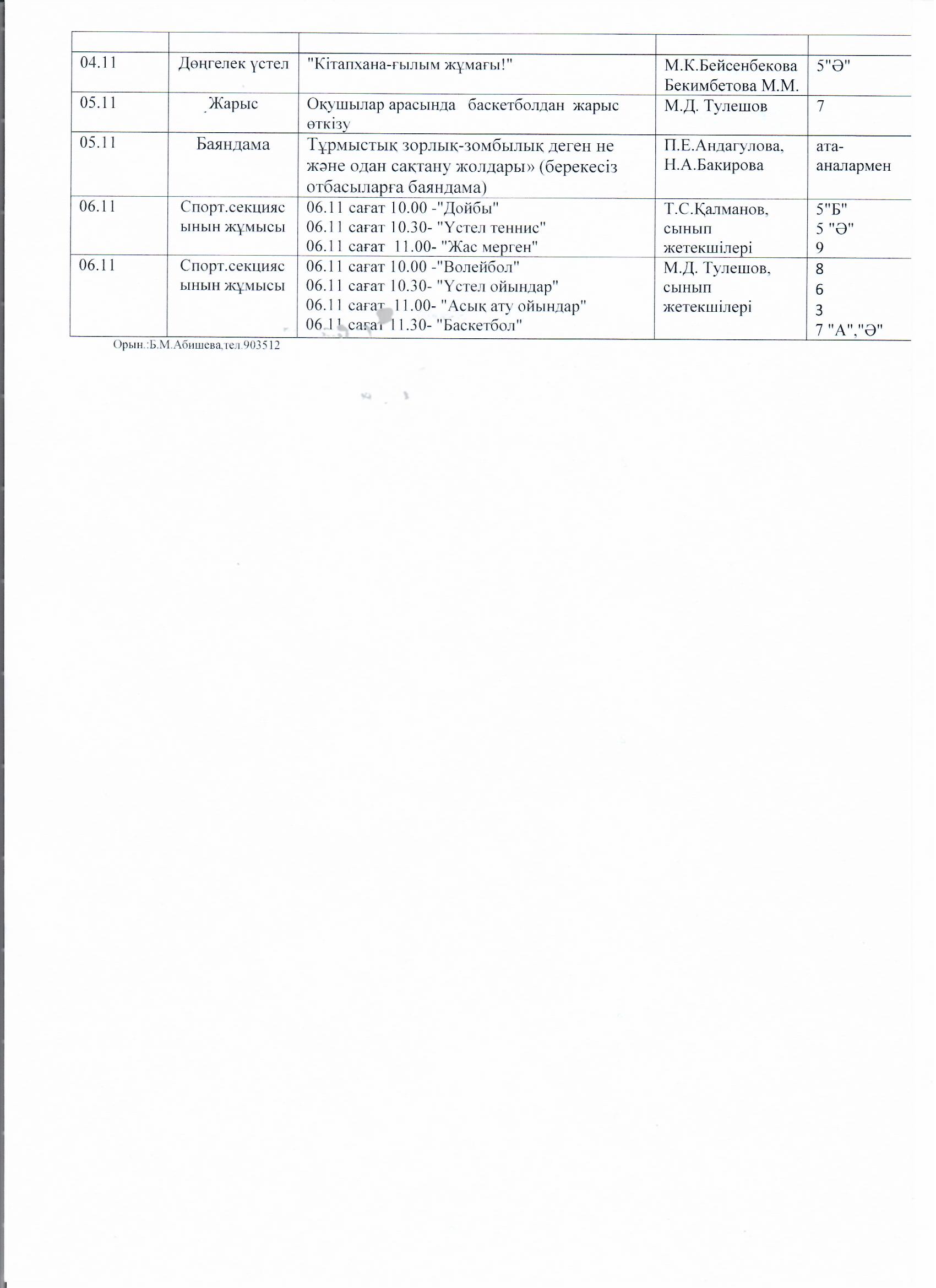 Мұғалімдер күнін мерекелеу аясында 1 ауысым (1,4,5,9-11) сыныптар арасында апта бойы "Ұстаз - ұлы тұлға" тақырыбында іс-шаралар өткізіліп жатыр.