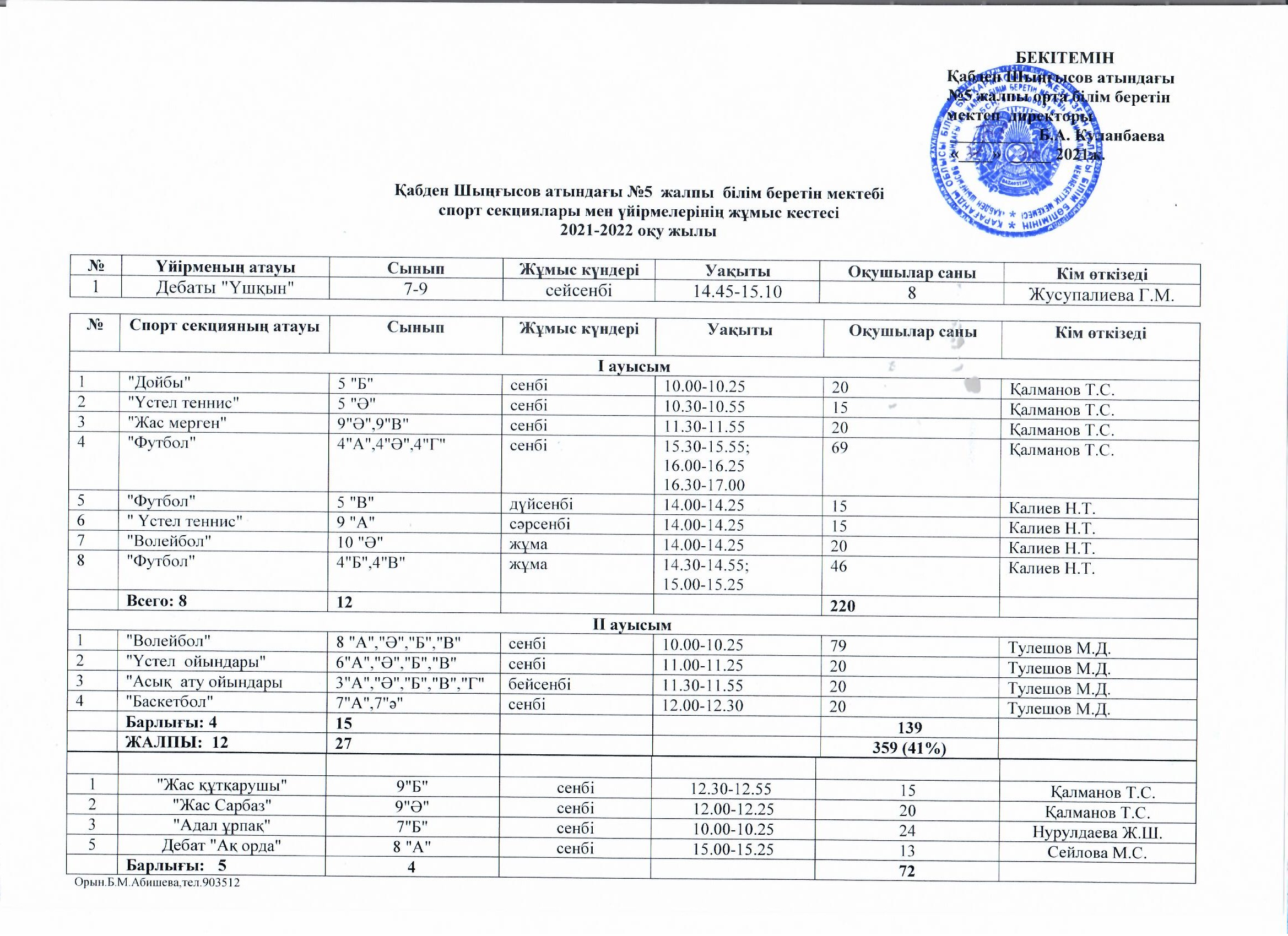 Қабден Шыңғысов атындағы №5 жалпы білім беретін мектепте 2021жылдың 6-11қыркүйек күндері 1 ауысым сыныптары арасында "Жаңа 2021-2022 оқу жылына дайындық" тақырыбында ата-аналар жиналысы өткізілді. https://www.facebook.com/107552721140150/posts/304052558156831/