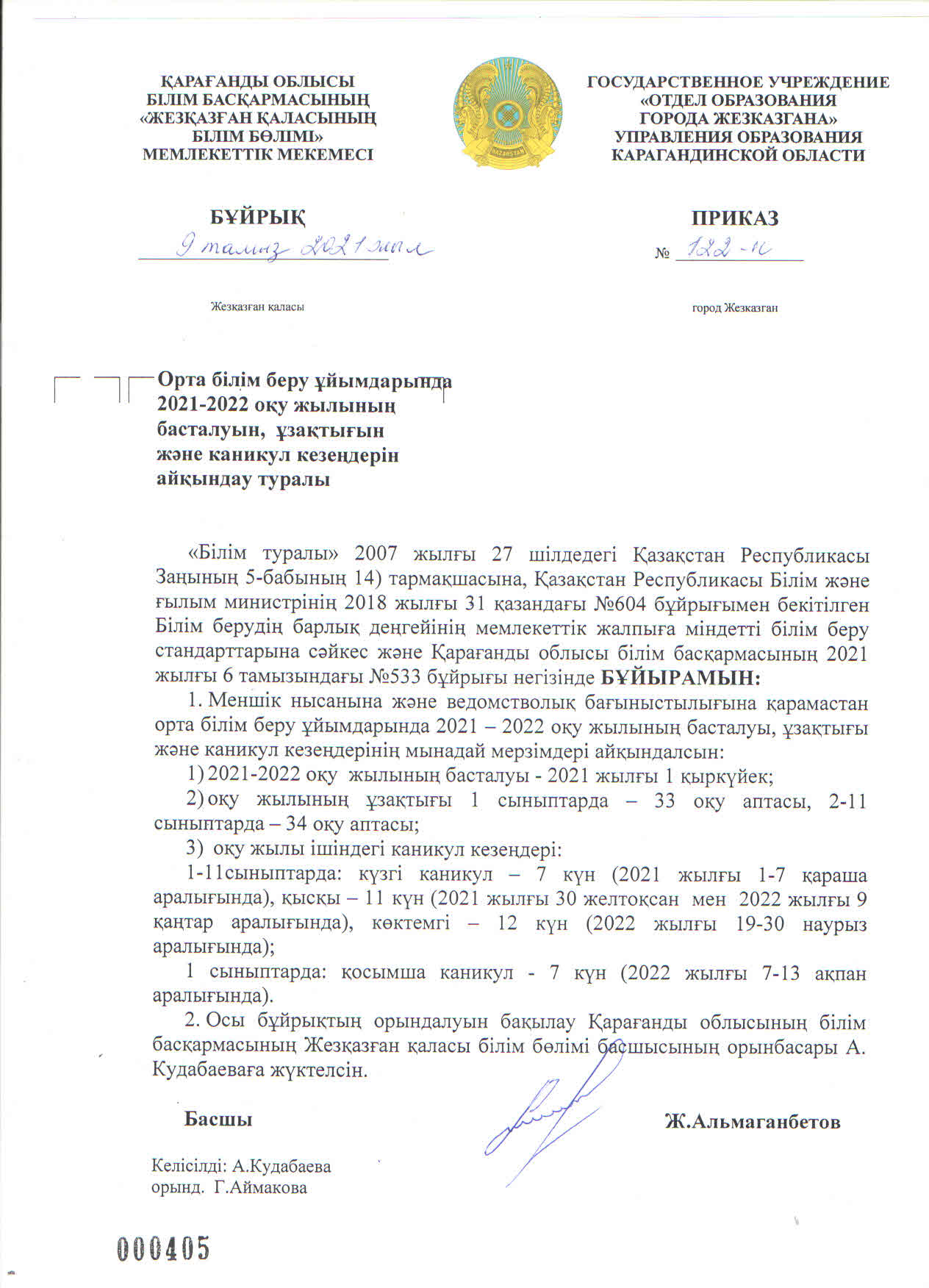 2022-2023 Оқу жылының басталуы бұйрық